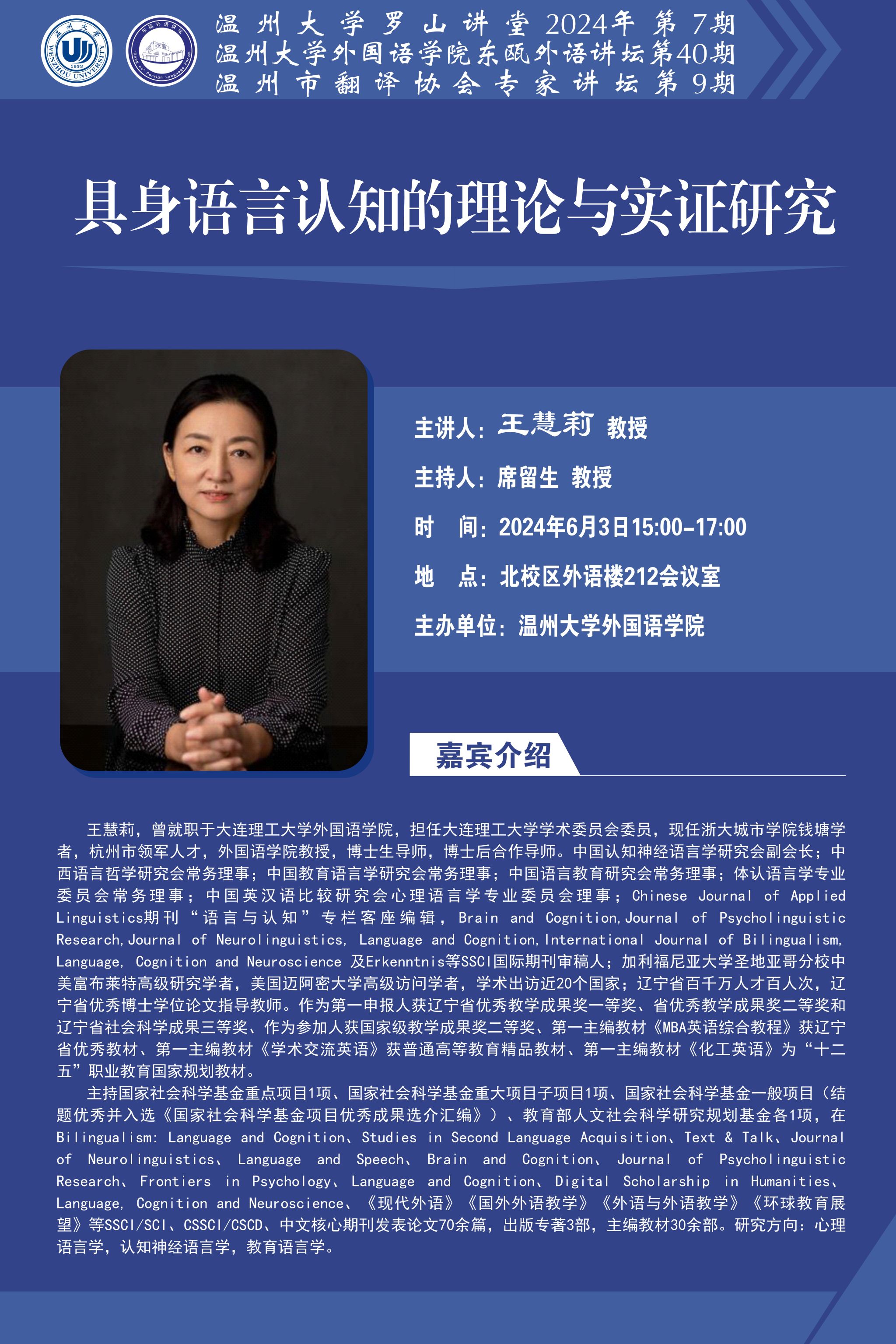 东瓯外语讲坛第40期预告:具身语言认知的理论与实证研究