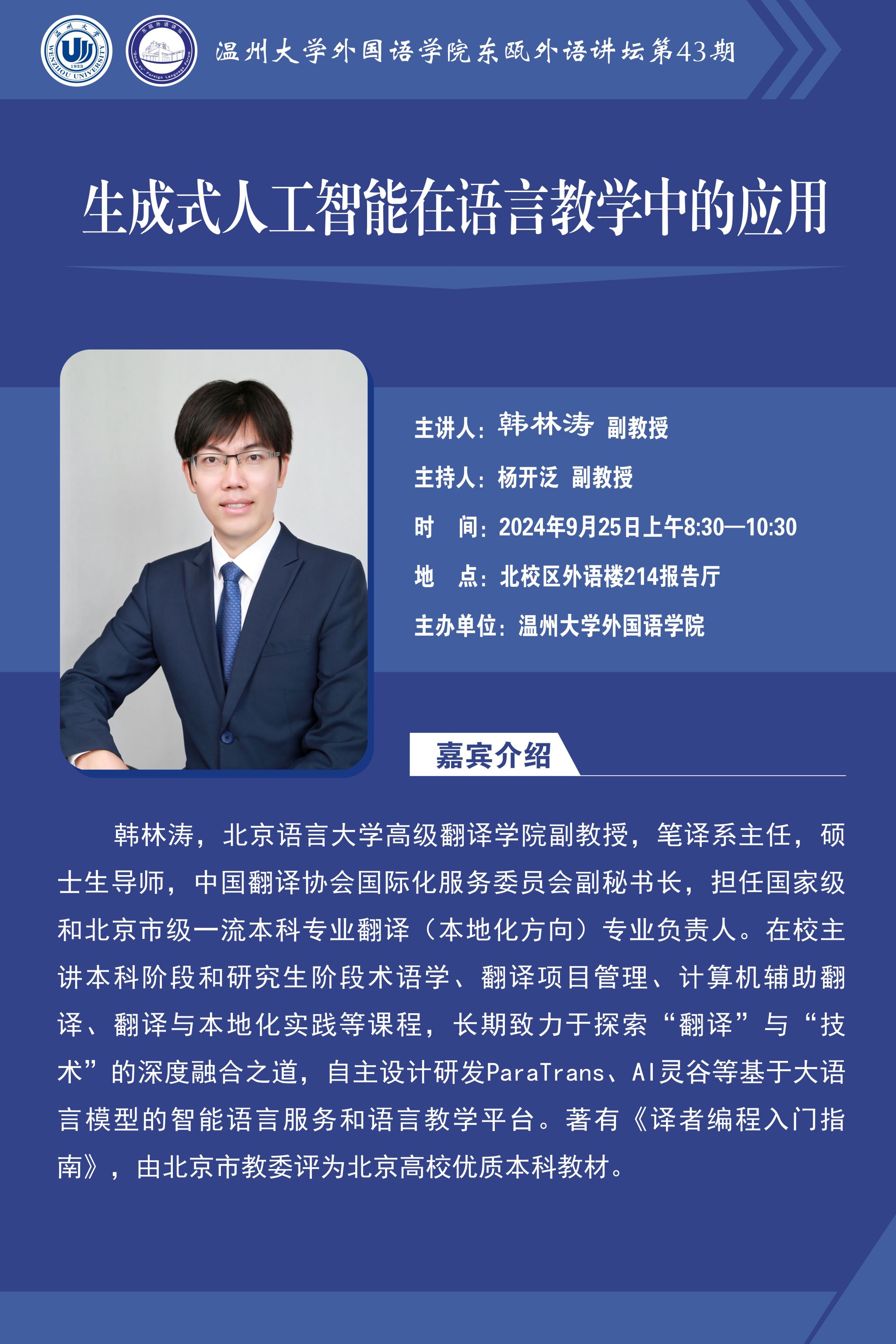 东瓯外语讲坛第43期预告:生成式人工智能在语言教学中的运用