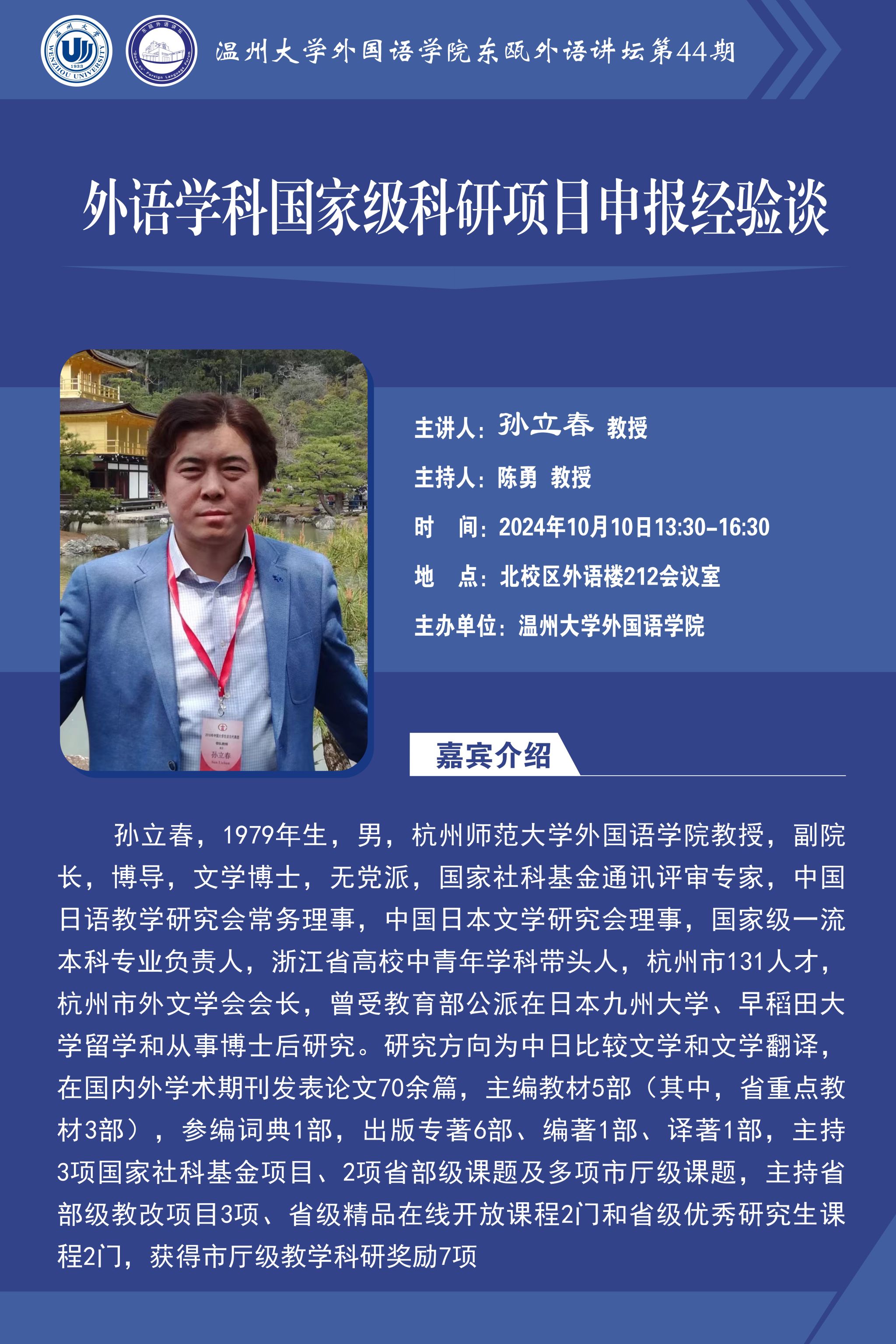 东瓯外语讲坛第44期预告:外语学科国家级科研项目申报经验谈