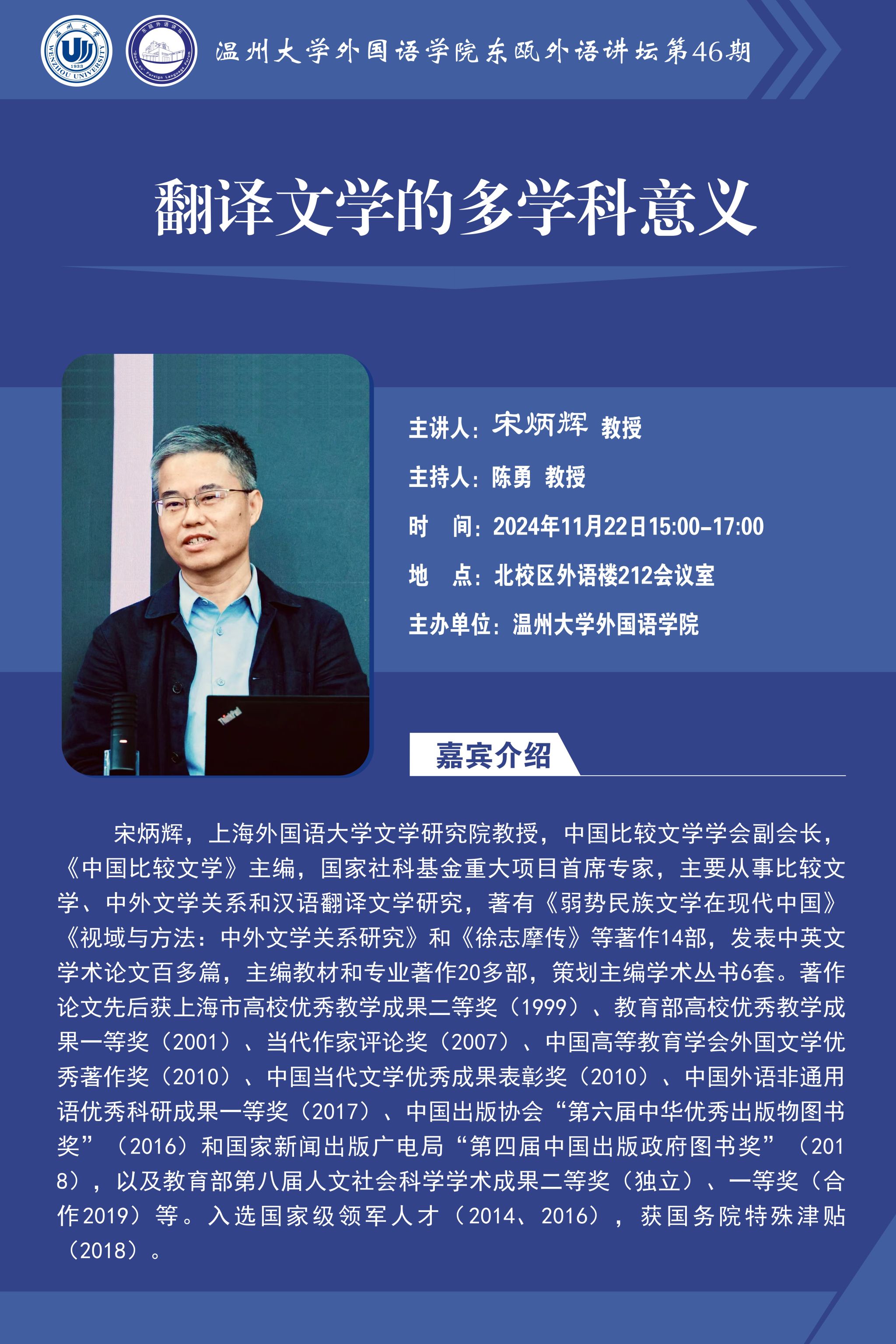 东瓯外语讲坛第46期预告:翻译文学的多学科意义