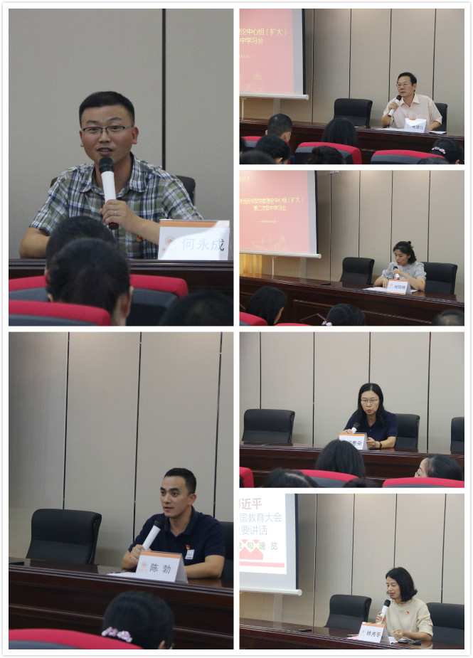 学习会上,学院七位党委委员分别就主题教育有关专题内容进行导读学习。何永成同志解读中央和省委主题教育工作会议精神;毛继光同志解读习近平总书记在政治局第15次集体学习上的讲话;陈勃同志解读习近平总书记在中央和国家机关党的建设工作会议上的讲话;倪晓晓同志解读习近平总书记在内蒙古调研的讲话;林秀冬同志解读习近平总书记对教育工作方面的讲话精神;汲寿荣同志解读习近平总书记在建国70周年大会上的讲话;姜海燕同志解读习近平总书记《维护党中央权威,贯彻民主集中制》的重要论述。