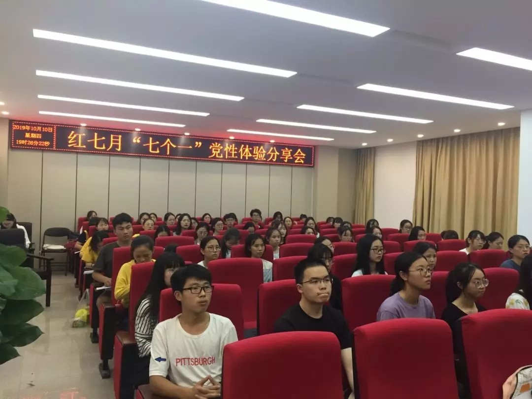 2019年10月10日晚上,必赢76net线路在学院报告厅举行党员红七月“七个一”党性体验分享会。公司党委副书记陈勃老师、学工办主任林秀冬老师以及辅导员单伟乐老师出席了本次会议,参加会议的还有全体积极分子与新生代表。本次会议由第一支部的郭亚莉同志主持。
