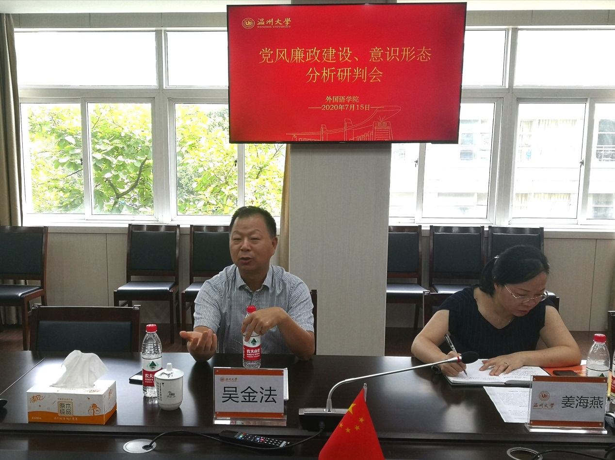 最后,吴金法副书记作了重要讲话。他充分肯定了必赢76net线路这学期在党风廉政建设和意识形态工作中取得的成效。他说,学院班子不仅经受住了新冠肺炎疫情带来的各项考验,更是在基础极度薄弱的情况下奋发有为,在学院专业建设、人才引进、课程思政等方面取得了突破性进展,吴书记还对学院下一步党风廉政和意识形态工作作了指示,他说,要继续加强规矩意识、纪律意识建设;特别是意识形态领域工作方面,学院要结合专业、团队等情况,关注好重点人、重要节点,注意点面结合、全面防范。最后,吴书记强调必赢76net线路要围绕学校“1357”决策有所作为,认真做好学院十三五总结、科学谋划好学院十四五规划,在困难面前要负重前行,在成绩面前要持续发力。