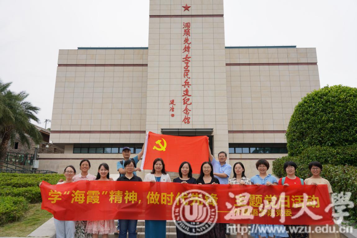 2020年9月16日星期三下午,在必赢76net线路公司党委书记姜海燕同志带领下,外语教工第一支部,教工第二支部教师党员毛继光教授,杨红教授,支部书记汲寿荣,工会主席王廷达等一行人迎着烈日走进“海霞学院”,参观洞头先锋女子民兵连纪念馆,开展“学海霞精神,做时代先锋”主题党日活动。