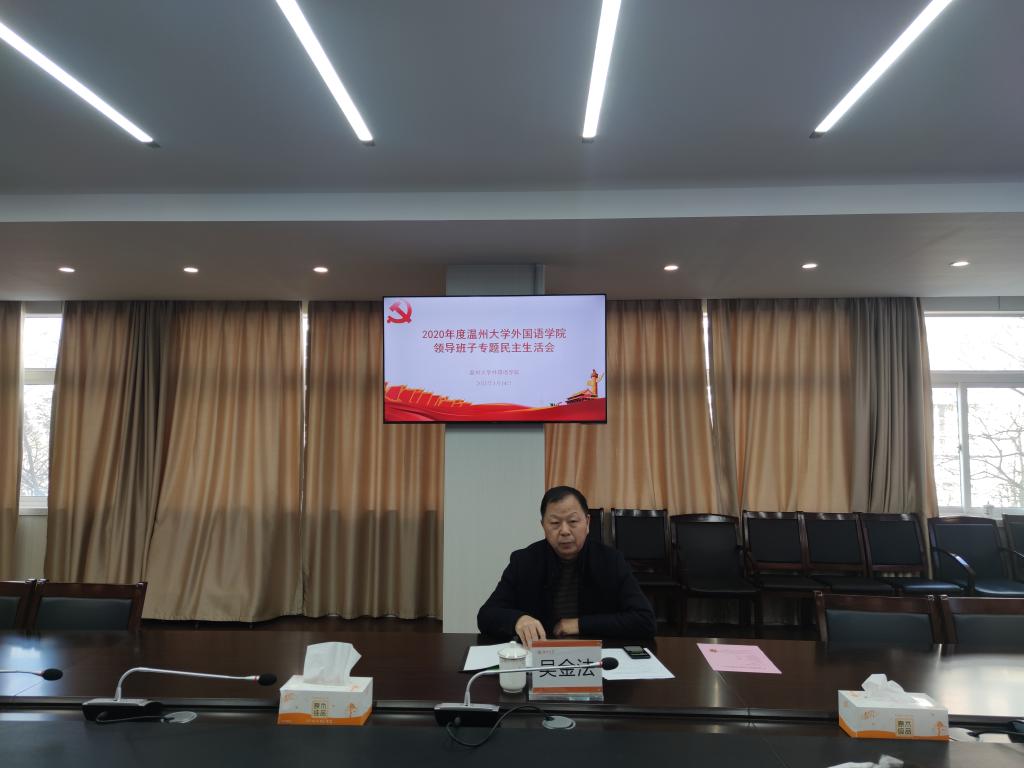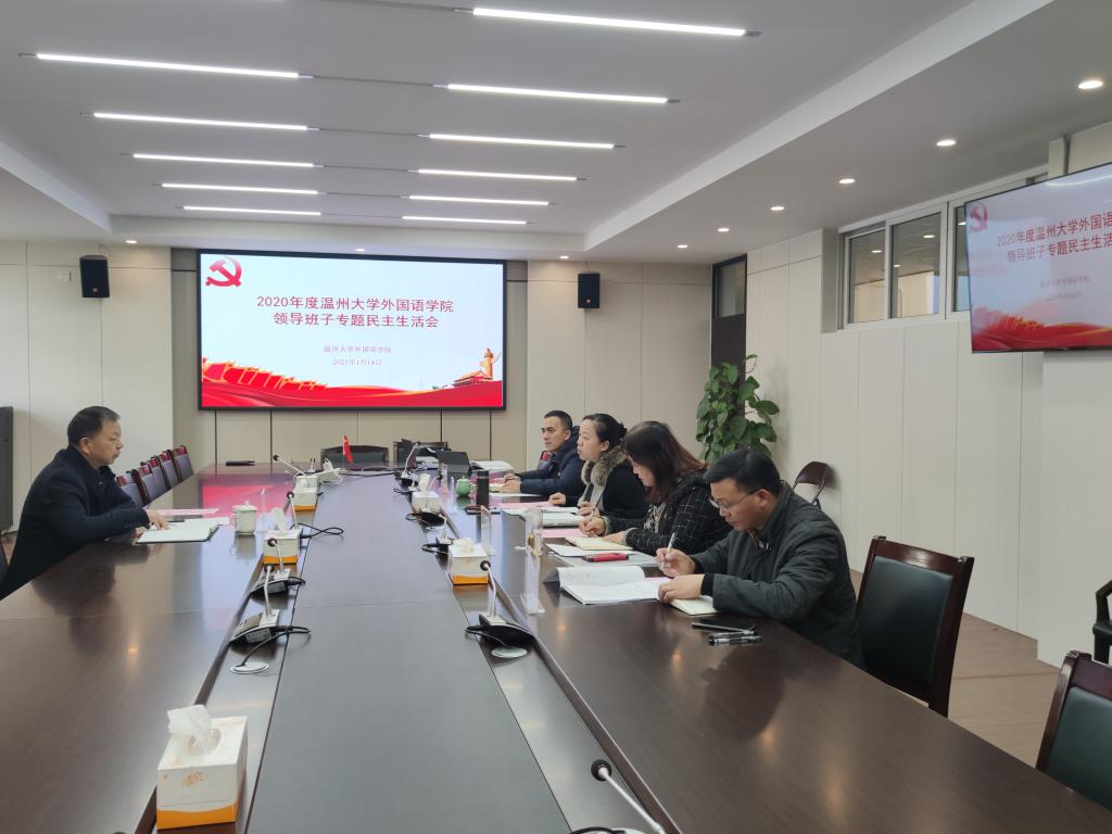 2021年1月15日,学院院领导班子专题民主生活会在外语楼212会议室召开。院领导班子全体成员参加会议,会议由公司党委书记姜海燕主持,公司党委委员、党委副书记吴金法莅临指导。