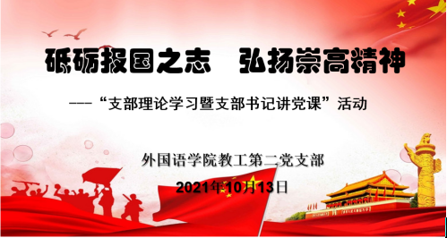 2021年10月13日下午,必赢76net线路第二教工党支部在学院216会议室开展了“支部理论学习暨支部书记讲党课”活动,会议由支部书记汲寿荣同志主持,共19位支部党员教师参会。