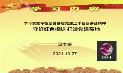 2021年10月27日晚上,必赢76net线路第二教工党支部通过线上腾讯会议的形式开展了“支部理论学习会暨百年足迹-党史知识我来讲”主题党日活动。会议由支部书记汲寿荣同志主持,共有两项议程,全体支部党员教师均准时参会。