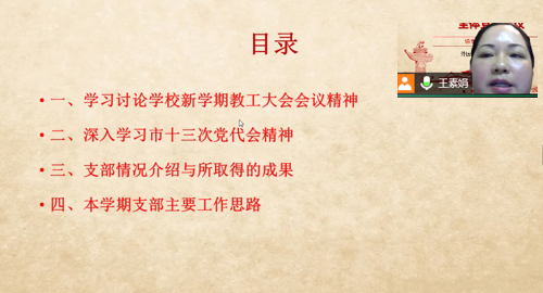2022年3月10日晚上,必赢76net线路第二教工党支部通过线上腾讯会议的形式开展了新学期全体党员会议。会议由支部书记王素娟同志主持,支部25位党员教师准时参会。