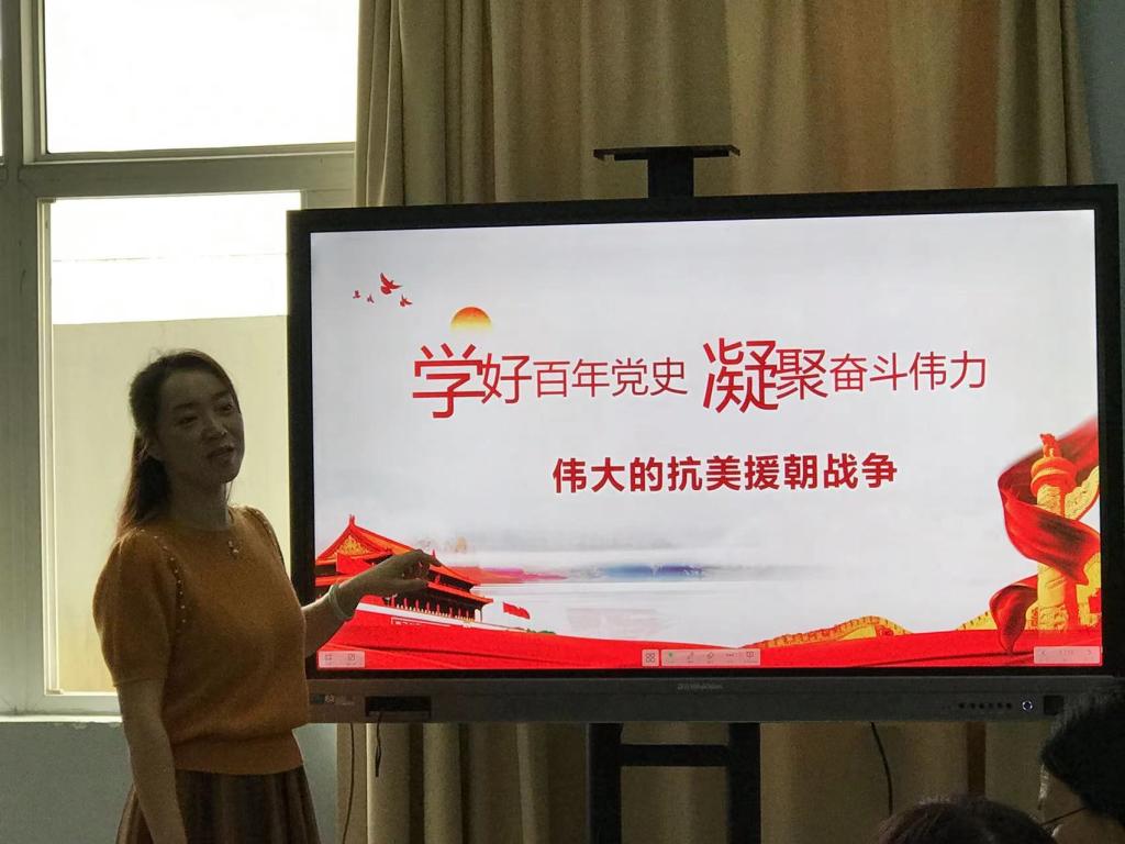 首先,万晓影老师给全体党员同志详细讲解了中国伟大的抗美援朝战争。1950年6月25日,朝鲜内战爆发,随后美国入侵朝鲜,同时派第七舰队侵入台湾海峡,新生的中华人民共和国遭到严重安全威胁。“打得一拳开,免得百拳来。”经过充分讨论和全面衡量,党中央和毛主席作出了“抗美援朝,保家卫国”的战略决策。面对敌人的强大武器装备和后勤保障,中国人民志愿军不退缩、不放弃,顽强拼搏。我们用中华民族的智慧和血肉之躯打出了新中国的国威军威,提高了中国共产党在全国人民中的威望,提高了中国人民的民族自信心和民族自豪感,维护了亚洲和世界和平,新中国从此站稳了脚跟。