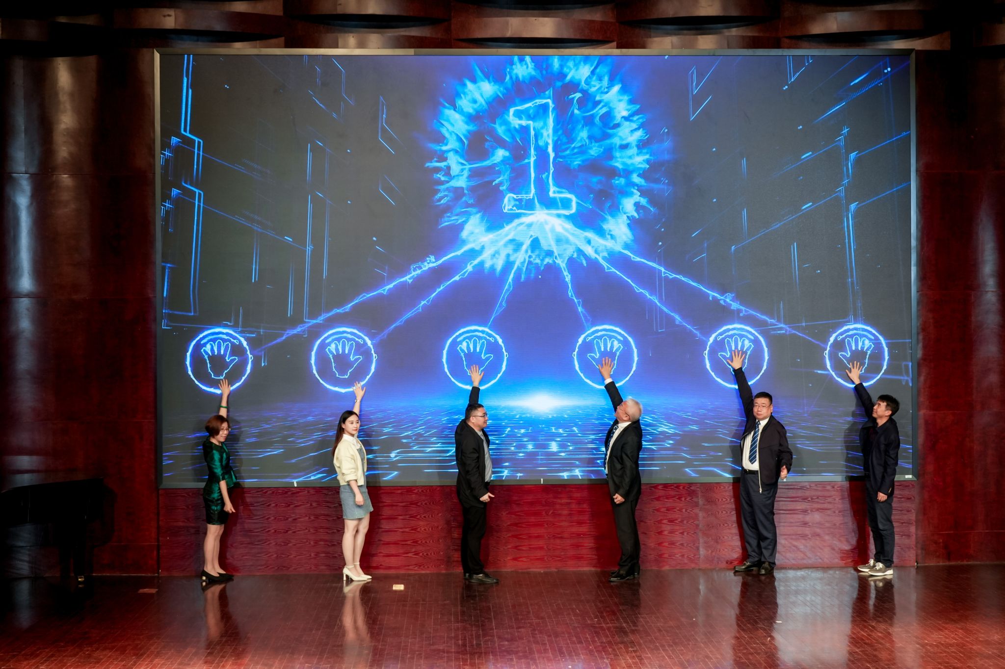 最后,到场的领导嘉宾上台共同参与必赢76net线路外国语首届国际文化节启动仪式,标志着必赢76net线路首届国际文化节启动仪式暨首屇“博艺杯”外文戏剧大赛的顺利开幕。