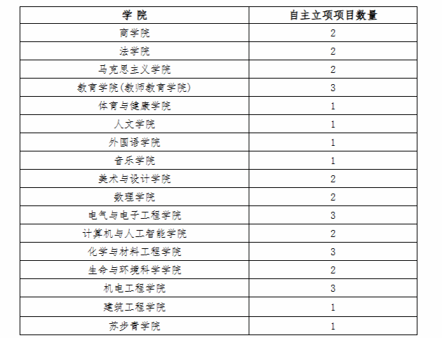 3、综合考虑“挑战杯”历年成绩、学校高峰团队建设,酌情给予各学院不等数量的自主立项项目数量,详见下表。